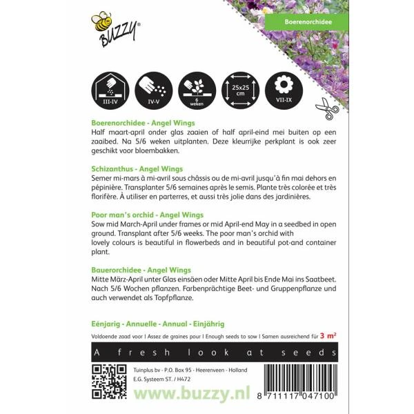 Schizanthus sinuata wisetonensis zaden van het merk Buzzy Seeds.