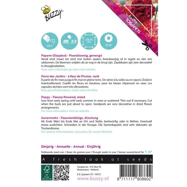 De bloemen snijden als ze nog in de knop zijn. Zaaddozen zijn zeer decoratief in droogboeketten.