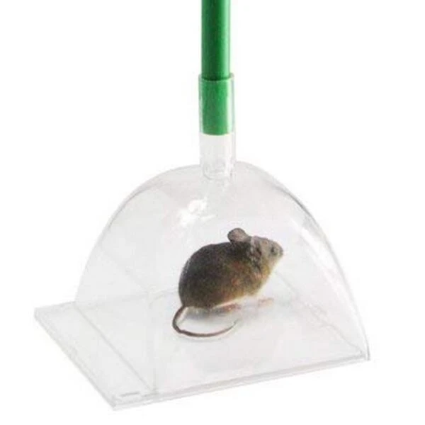 Met dit eenvoudige gadget vang je alle spinnen en ongedierte zoals wantsen, langpootmuggen, wespen en muizen zonder ze ook maar één keer aan te raken. Schuif het deurtje open en zet de stolp over het insect, daarna draai je het geheel en valt het deurtje vanzelf dicht onder invloed van de zwaartekracht of schuif je het dicht met de voet of met de hand om het diertje te vangen, dit allemaal op armlengte!