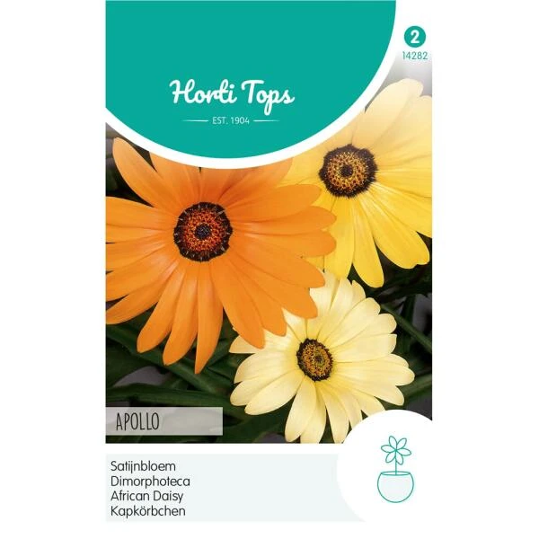 Een eenjarige plant met satijnglanzende bloemen. De bloemblaadjes van de variant Apollo zijn lichttot donkergeel en rond het hartje is er een donkere rand tezien. De bloemen sluiten ’s avonds en openen zich weer s’morgens.
