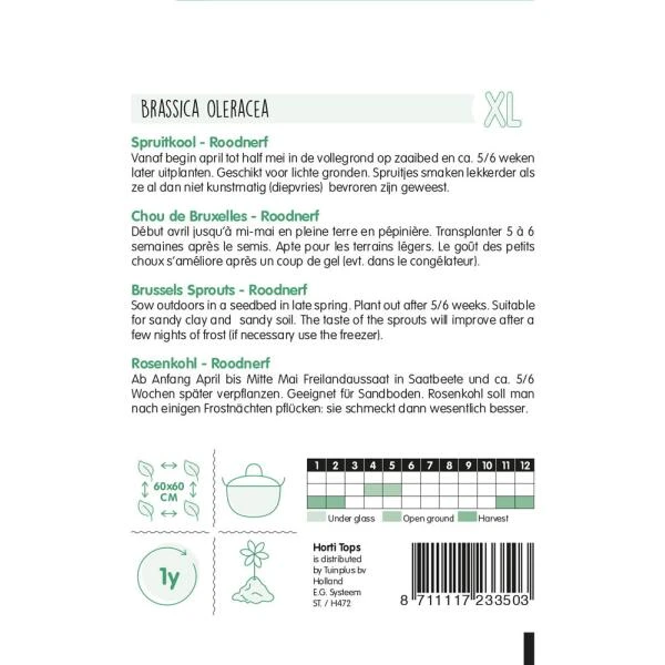Spruitkool Type Sanda kan je zaaien vanaf april tot half mei in volle grond, 5 à 6 weken later uitplanten. Het is een geschikt ras voor lichte grond.